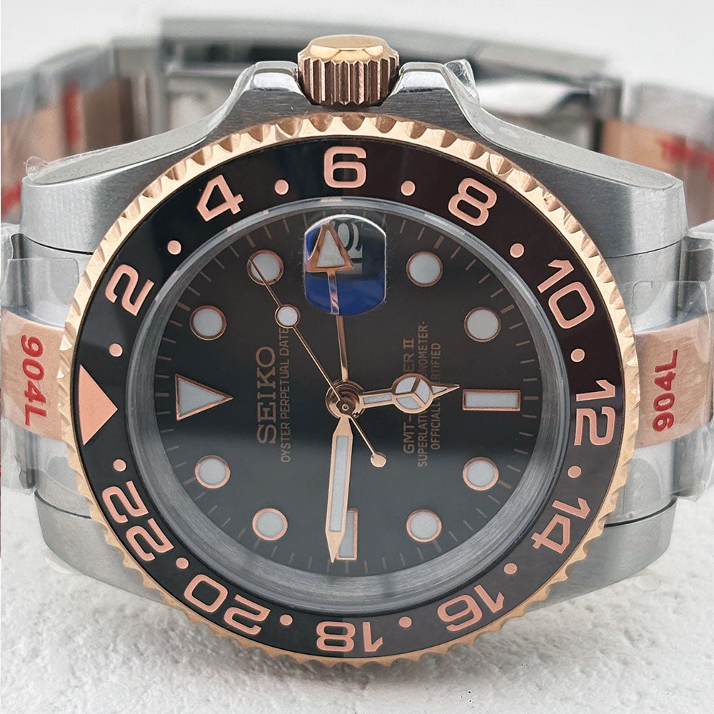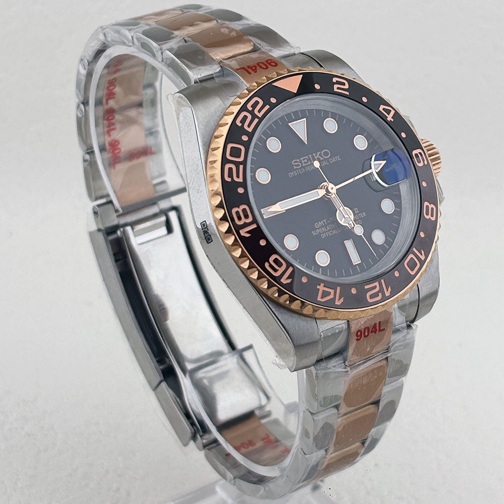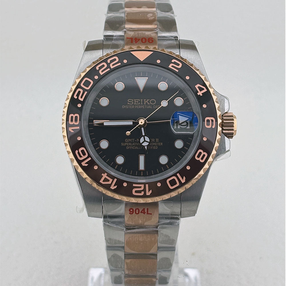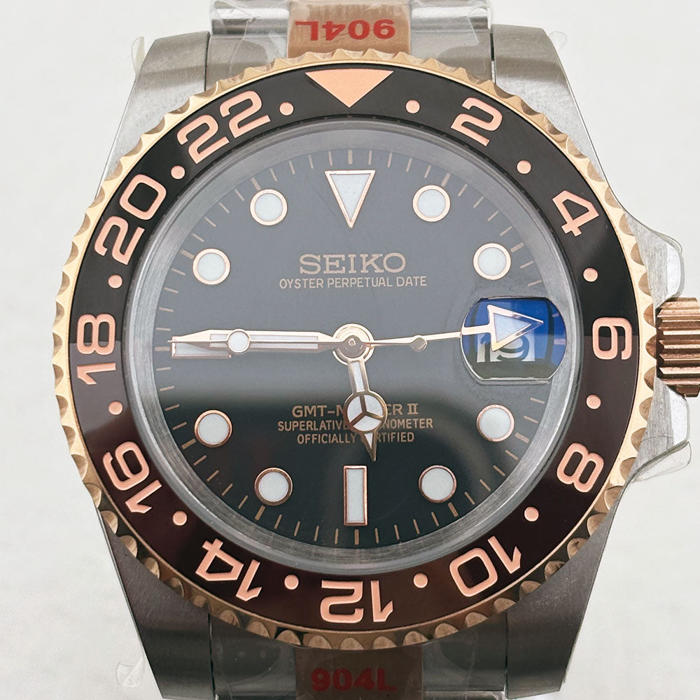 Custom Seiko GMT Rose gold GMT - 40mm With date Watch—grab yours before it disappears.