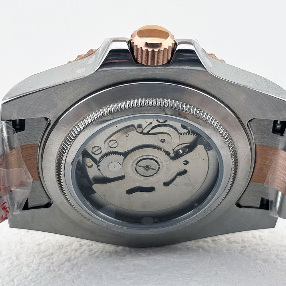 Enter the Custom Seiko GMT Rose gold Carbon Fiber GMT - 40mm With date Watch—the kind of timepiece that looks like it’s been through wars, outlived enemies, and still came out ticking like it owns the place.