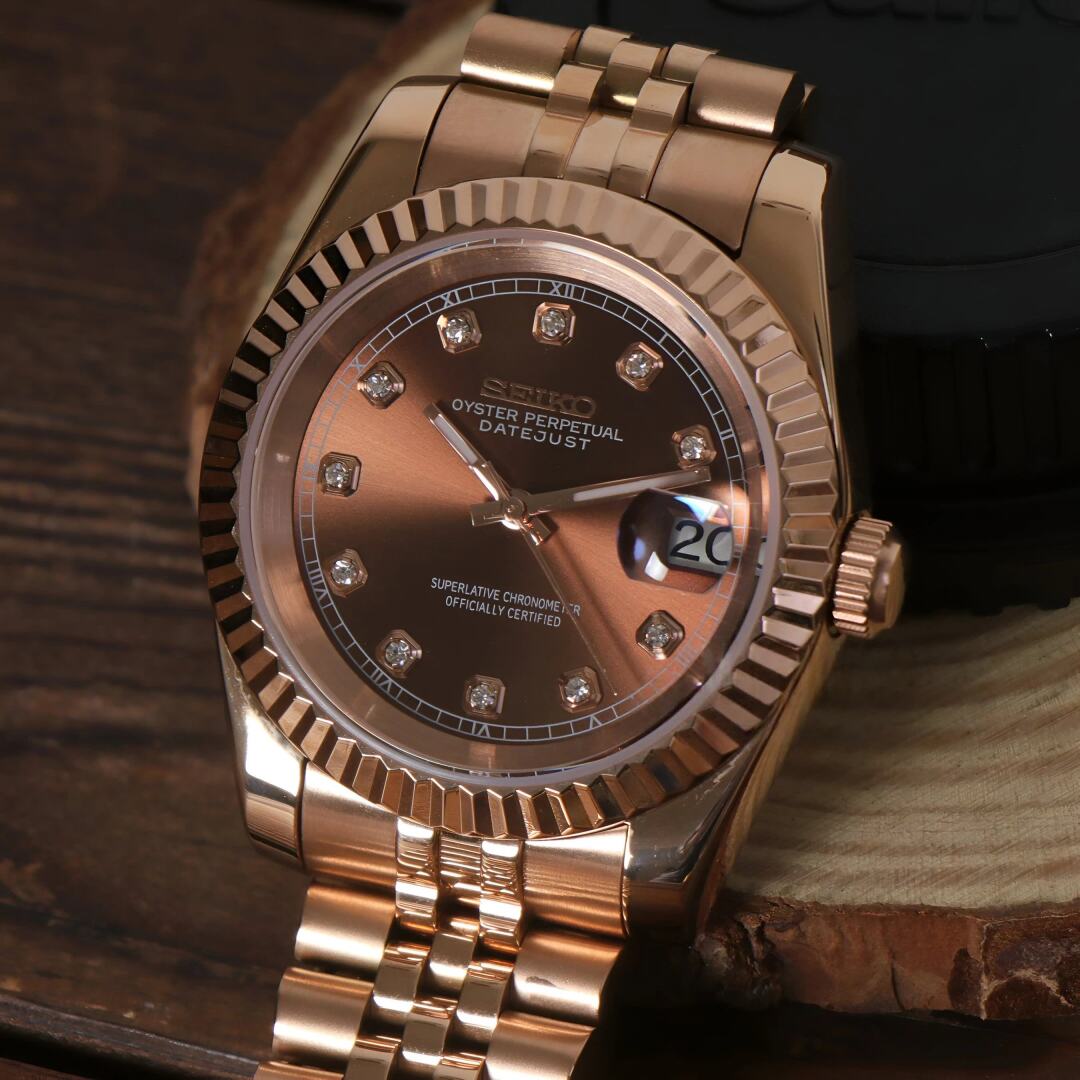 SeikoMod Datejust Rose Gold Crystal Champagne