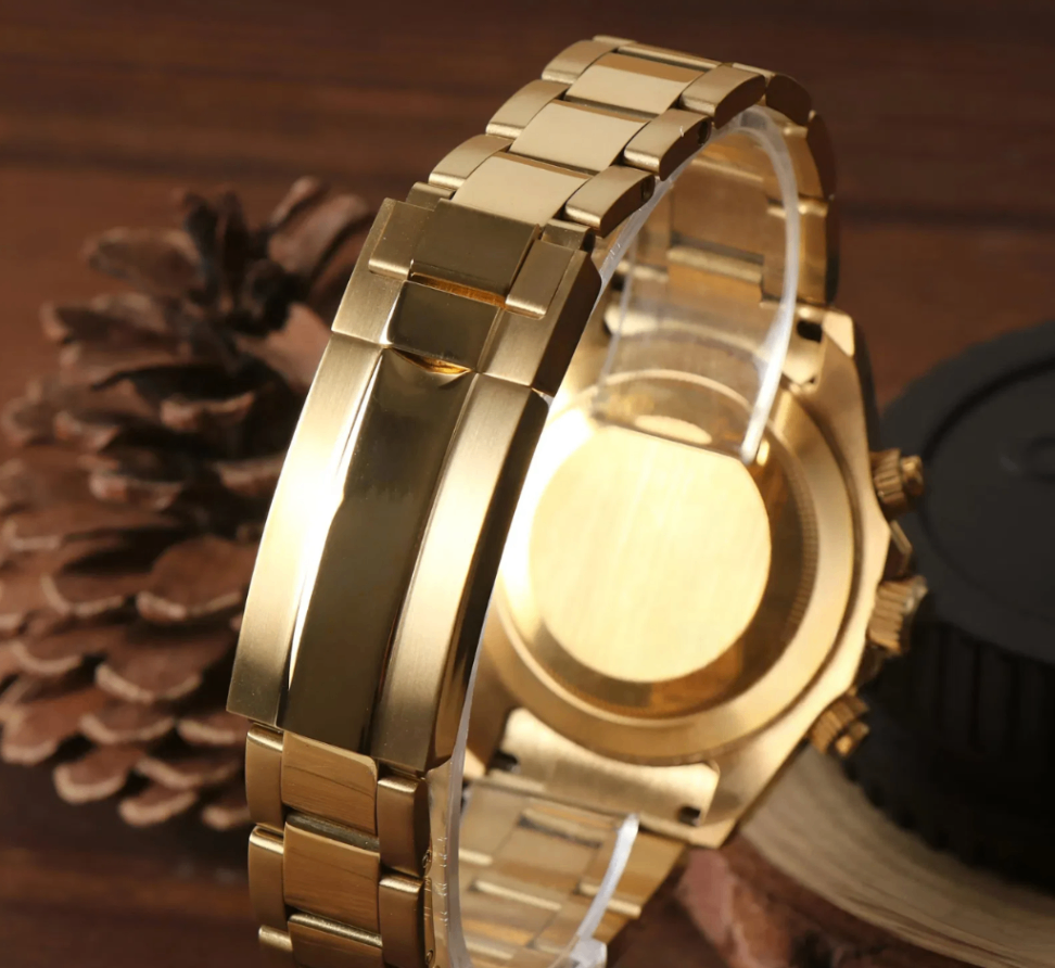 Elevate your style with the Seiko Mod Daytona "John Mayer", a custom Seiko VK63 Mechanical Quartz Watch, inspired by the iconic “Daytona John Mayer” design. This unique timepiece features a Gold Green dial, encased in a 40mm stainless steel frame, offering a blend of elegance and precision for watch enthusiasts.