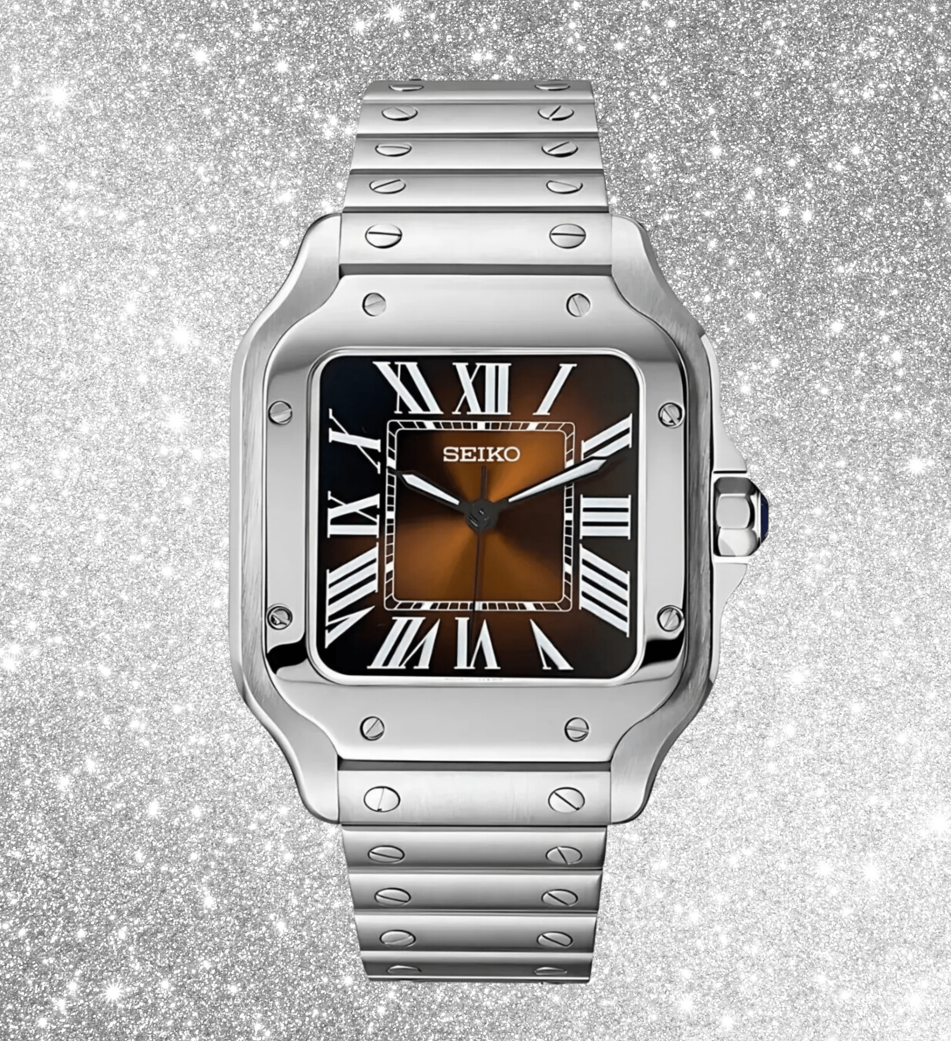 Introducing the Seiko Mod Santos Brown, a custom Seiko NH35 Automatic Watch inspired by the iconic “Santos” design. This piece combines elegance and precision, featuring a Brown Roman aftermarket dial encased in a 38mm stainless steel frame. The transparent back piece allows a glimpse into the intricate automatic movement, making it a standout choice for watch aficionados.