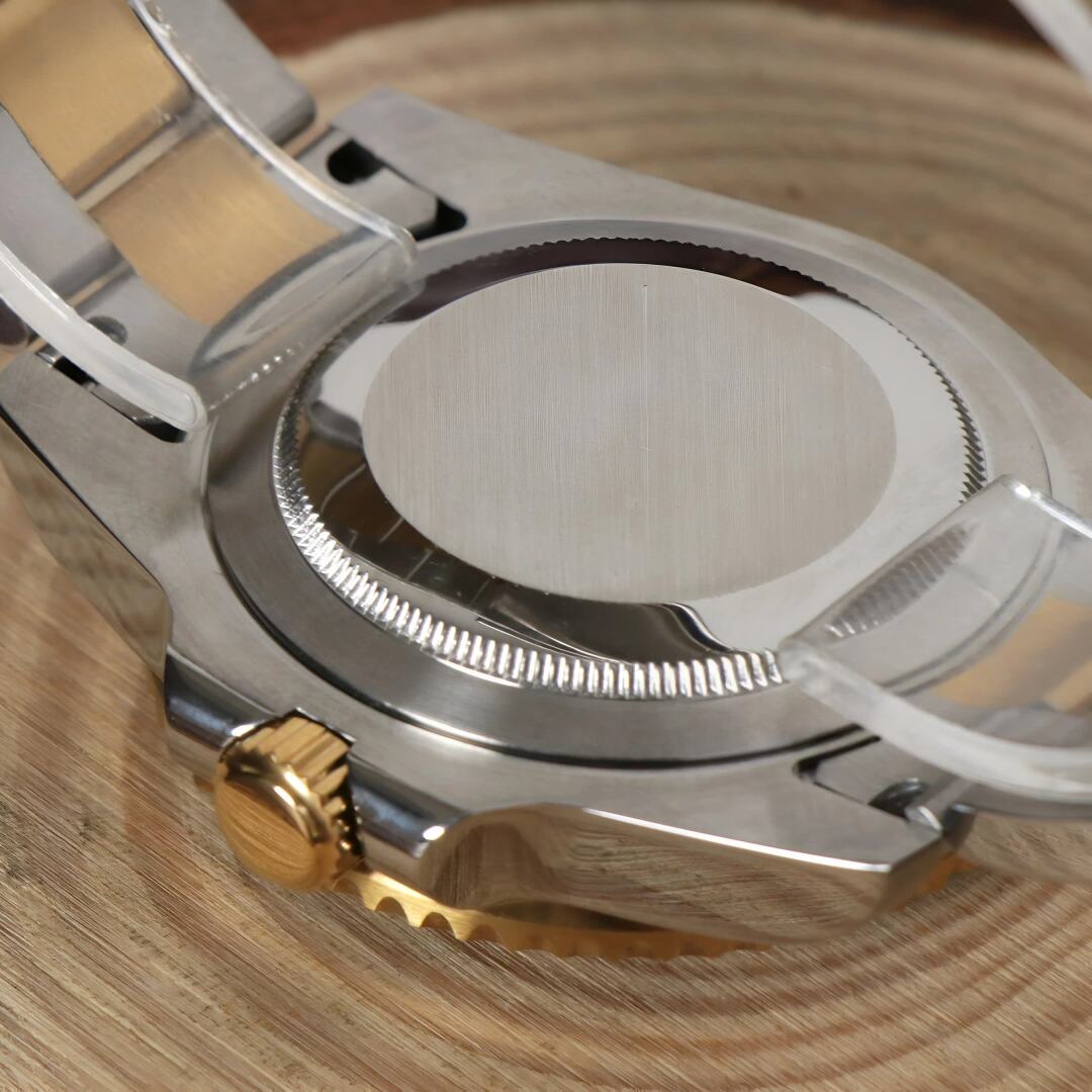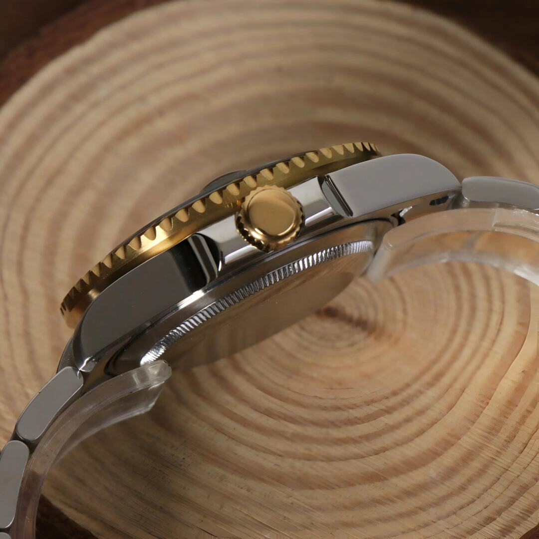 Introducing the Seiko Mod Submariner Two Tone, a custom Seiko NH35 Automatic Watch inspired by the iconic Submariner, meticulously crafted for watch enthusiasts seeking uniqueness and precision. This mode features a Black dial and a transparent back piece, allowing a glimpse into the intricate automatic movement.