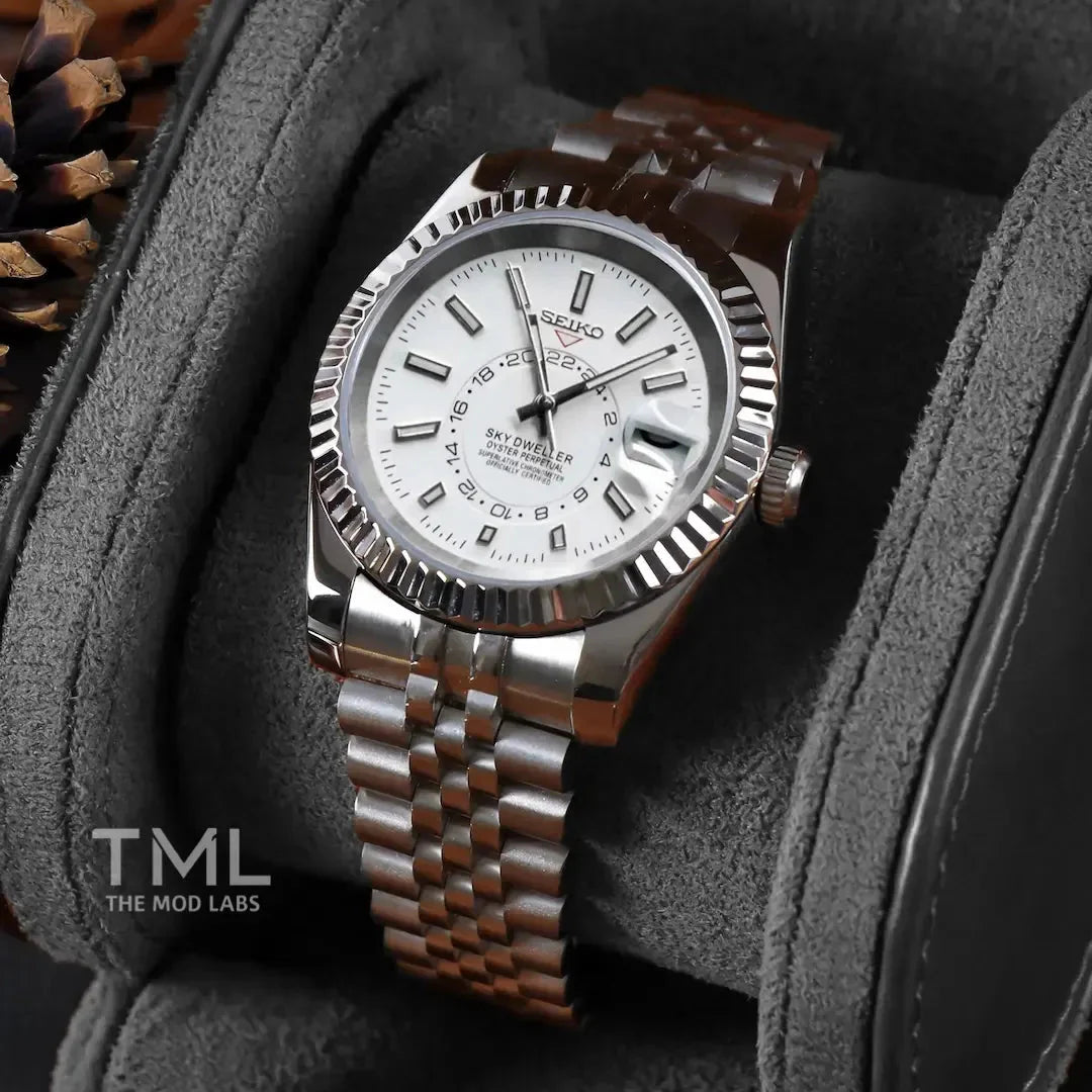 Inspired by the iconic Sky Dweller design, and featuring the prestigious Seiko NH35 automatic movement, we present the Seikojust SeikodayDatemod. A 36/39 mm high-quality watch combining the perfect alliance between excellence and accessibility.