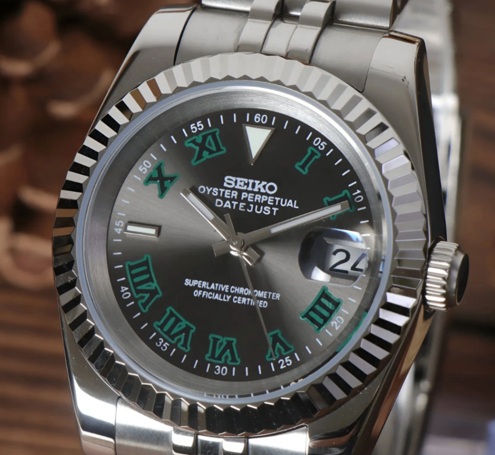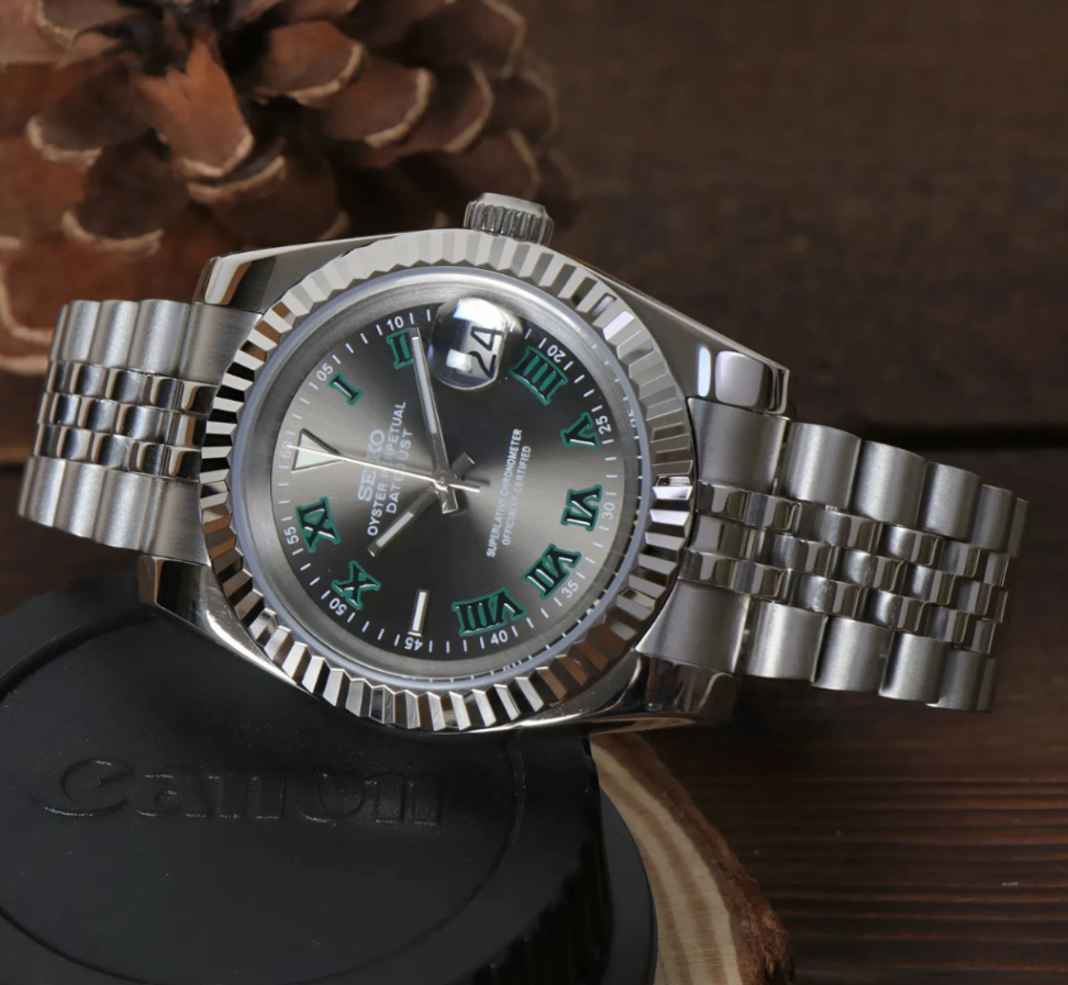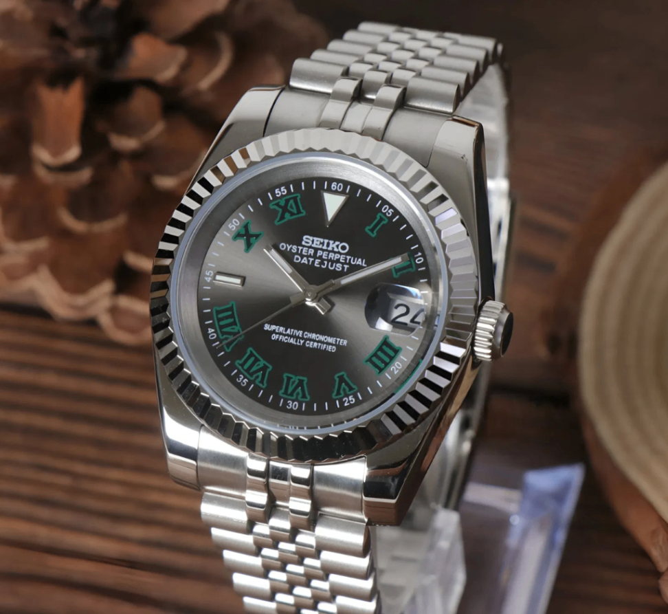 Discover the Datejust Wimbledon, a meticulously crafted Seiko NH35 Automatic Watch, inspired by the iconic “DateJust” design. This elegant timepiece features an Wimbledon aftermarket dial, encased in a 36 mm or 39 mm fluted bezel, offering a blend of style and precision for watch enthusiasts.