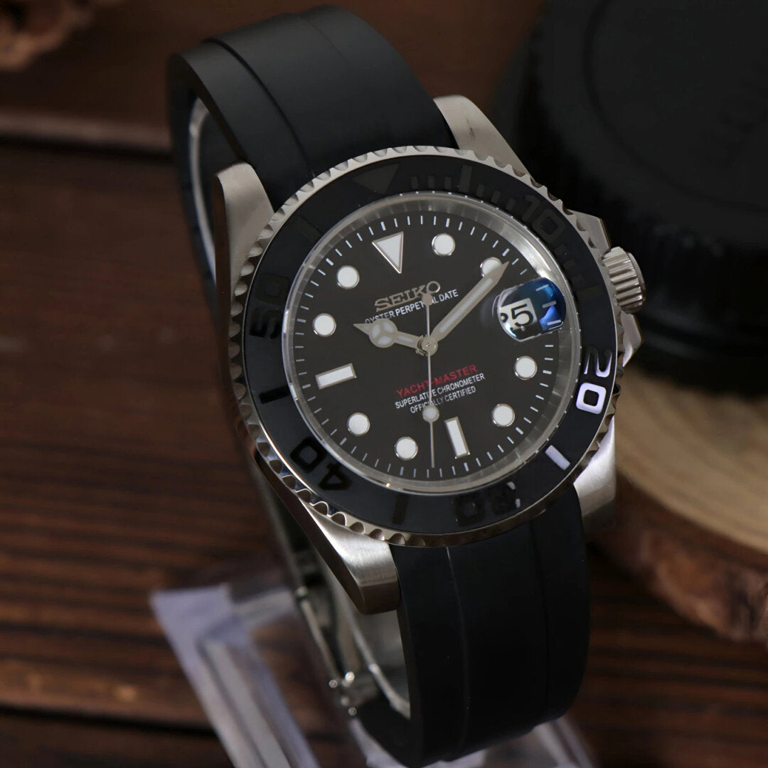 Introducing the Seiko Mod Submariner Sliver Ⅱ , a custom Seiko NH35 Automatic Watch inspired by the iconic Submariner Blue Black, meticulously crafted for watch enthusiasts seeking uniqueness and precision. This mode features a Blue Black dial and a transparent back piece, allowing a glimpse into the intricate automatic movement.