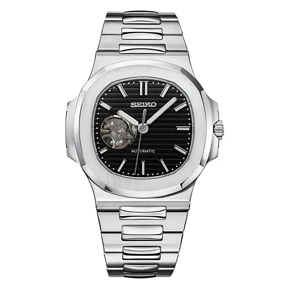 Inspired by the iconic Nautilus design, and featuring the prestigious Seiko NH38 automatic movement, we present Seikonautilus mod. A 41 mm high quality watch combining the perfect alliance between excellence and accessibility.