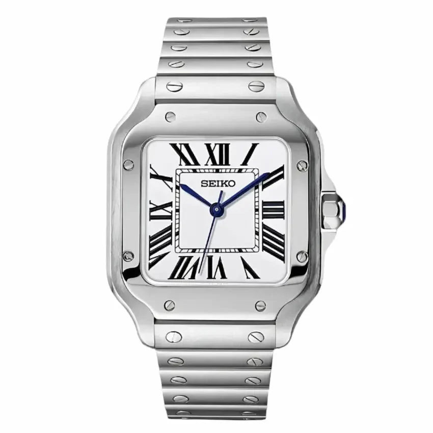 Inspired by the iconic Santos design, and featuring the prestigious Seiko NH35 automatic movement, we present the Seikosantos mod. A 38 mm high quality watch combining the perfect alliance between excellence and accessibility.